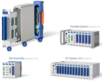 interchangeable enclosures: DIN rail, Rugged & Portable, 1U/3U 19" racks, and be